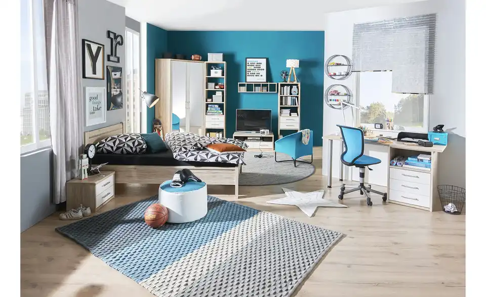 Arne ist ein schlichtes Bettgestell für das Jugendzimmer. Es hat eine Liegefläche von 120 x 200 Zentimeter. Der Holzton in Eiche San Remo (Nachbildung) sieht sehr natürlich aus und fügt sich in jede Einrichtung ein. Am besten passt Arne jedoch zu den anderen Möbeln der Jugendzimmerserie.