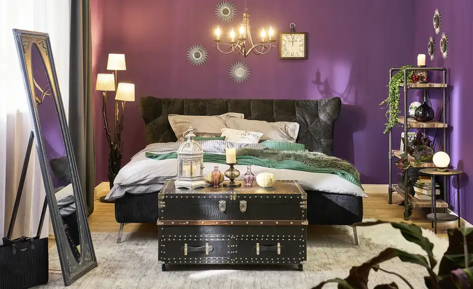 Truhe oder Couchtisch? Teramo ist beides. Der bewegliche Couchtisch im Truhendesign sieht nicht nur klasse aus, sondern bietet auch praktischen Stauraum. Teramo ist mit schwarzem Kunstleder in Kroko-Optik bezogen. Akzente aus dunkler Kiefer und helle Metallnieten verleihen ihm das gewisse Etwas. Ziehen Sie die Tischplatte auseinander: Hier finden Sie ein herausnehmbares Tablett und ein integriertes Flaschenregal mit Platz für zehn edle Tropfen. Im unteren Bereich des Couchtisches gibt es zwei Schubkästen je Seite. Verstauen Sie hier zum Beispiel Magazine und Fernsehzubehör. Dank der leichtgängigen Rollen können Sie den Truhentisch problemlos bewegen.