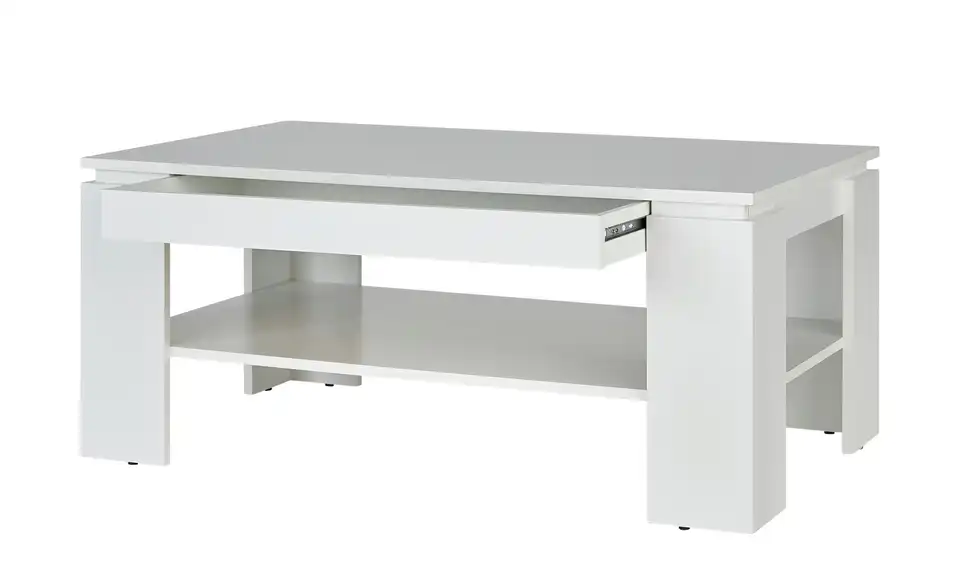 Dank seines schlichten, zeitlosen Designs passt der Couchtisch Harrison zu vielen Einrichtungen. Er ist komplett in Weiß gehalten. Alle Oberflächen sind mit Melamin beschichtet und deshalb kratzerunempfindlich. Neben der rechteckigen Tischplatte bietet Harrison eine Ablage. Ein weiteres Highlight: Die Schublade direkt unter der Tischplatte.