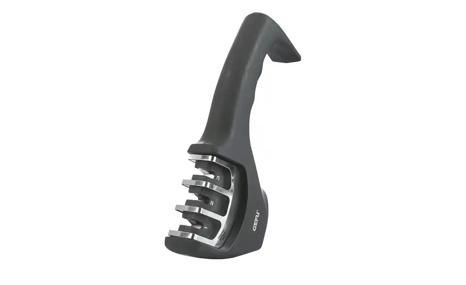 Dieser dreistufige Messerschärfer bietet einen Diamantschleifstein, der beschädigte Klingen glättet, bevor sie in Stufe 2 mit Wolframstahl ihre V-Form wieder erhalten und geschärft werden. Das Finish übernimmt der Keramikschleifstein, der die Klinge poliert und alle Unebenheiten ausgleicht. Durch die Anti-Rutsch-Gummierung steht der dreistufige Messerschärfer fest auf der Arbeitsplatte – und der ergonomische Griff sorgt für ein angenehm-sicheres Griffgefühl.