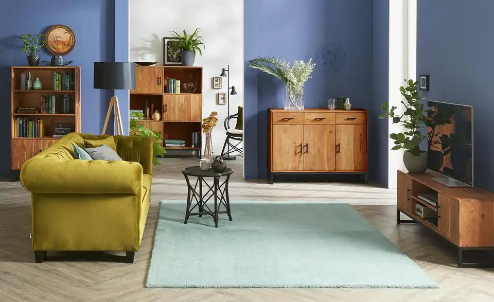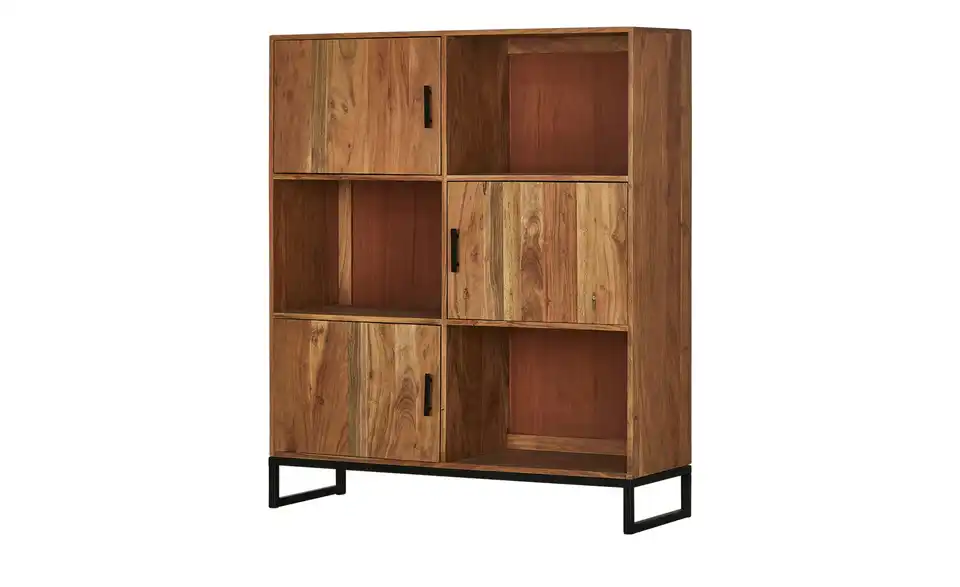 Akazienholz ist stabil und hat eine geschmackvolle Maserung. Deshalb wird es gerne für Möbel verwendet – so wie beim Highboard Candela. Es besteht aus massiver Akazie. Die Oberfläche ist lackiert worden, was das Holz einerseits schützt, aber auch die auffällige Maserung noch besser zur Geltung bringt. Das Kufengestell aus anthrazitfarbenem Metall setzt sich kontrastreich ab. Candela verfügt über drei offene Fächer und drei Fächer mit Tür davor. So ergibt sich vielseitiger Stauraum für Sie. Durch die exzellente Qualität der Materialien und Verarbeitung haben Sie lange Freude an dem Highboard.