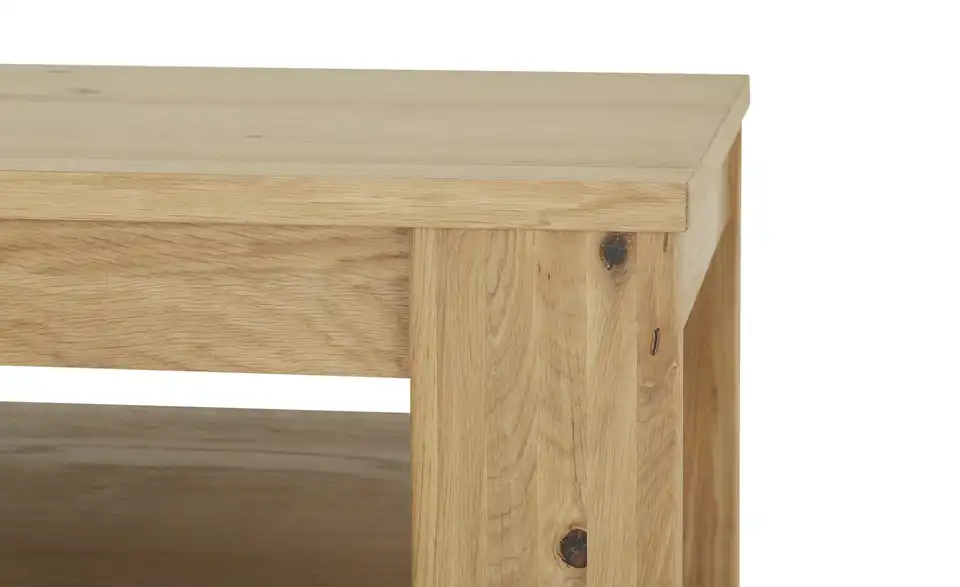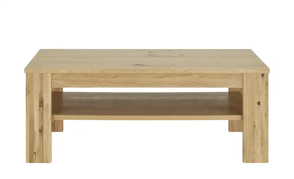 Natürliche Eiche Bianco dominiert das Erscheinungsbild des Couchtischs Laguna von Jette Home. Das hochwertige Furnier wurde geölt und kommt so noch besser zur Geltung. Unter der 115 x 65 Zentimeter großen Tischplatte finden Sie außerdem eine praktische Ablagefläche, auf der Magazine, Bücher und Fernbedienungen abgelegt werden können. Dank seiner Höhe von 45 Zentimetern passt der Couchtisch zu zahlreichen, handelsüblichen Sofas und Sesseln.