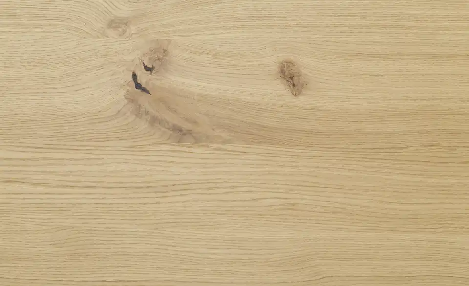 - Mehr zu MaterialTischplatte und Gestell aus Holzwerkstoff furniert in Asteiche Bianco geölt