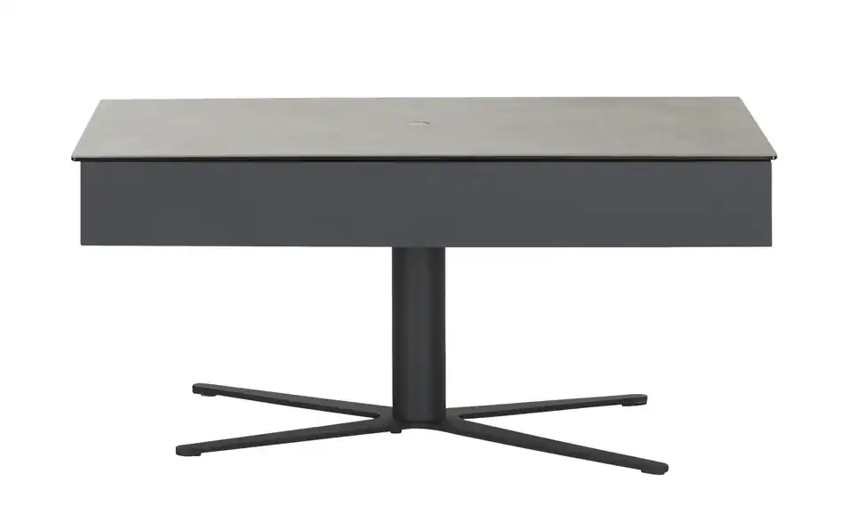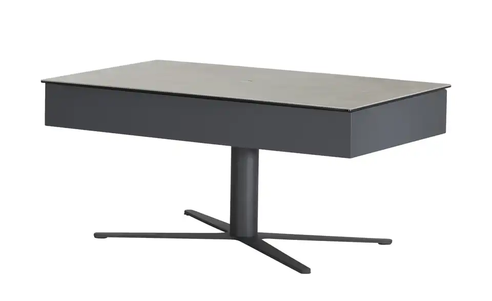 - Mehr zu Ausstattung / FunktionMit dem Knopf in der Mitte der Tischplatte höhenverstellbar