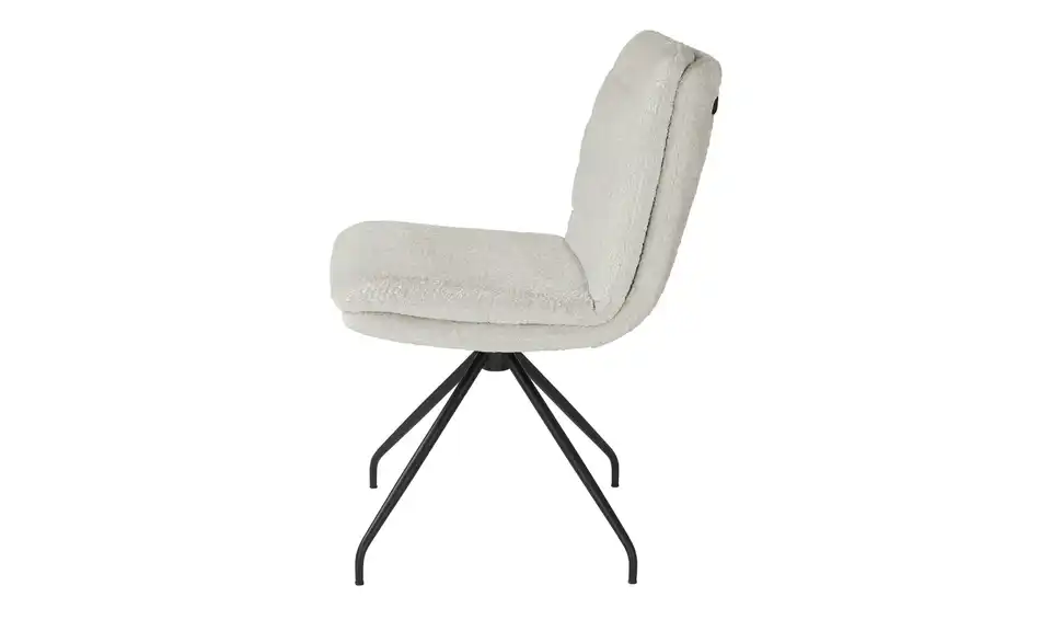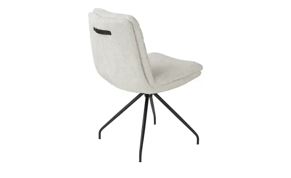 Schwarze filigrane Metallbeine tragen diesen drehbaren Markenstuhl von Jette Home. Die Sitzschale ist mit einem weichen Chenillestoff bezogen, der sich auch auf der dick gepolsterten Sitzfläche fortsetzt. Ein schwarzer Ledergriff an der Rückenlehne erleichtert das Bewegen des Stuhls. Entdecken Sie weitere Stühle der gleichnamigen Serie. So können Sie mehrere verschiedene Stühle miteinander kombinieren und Ihre Essgruppe auflockern.