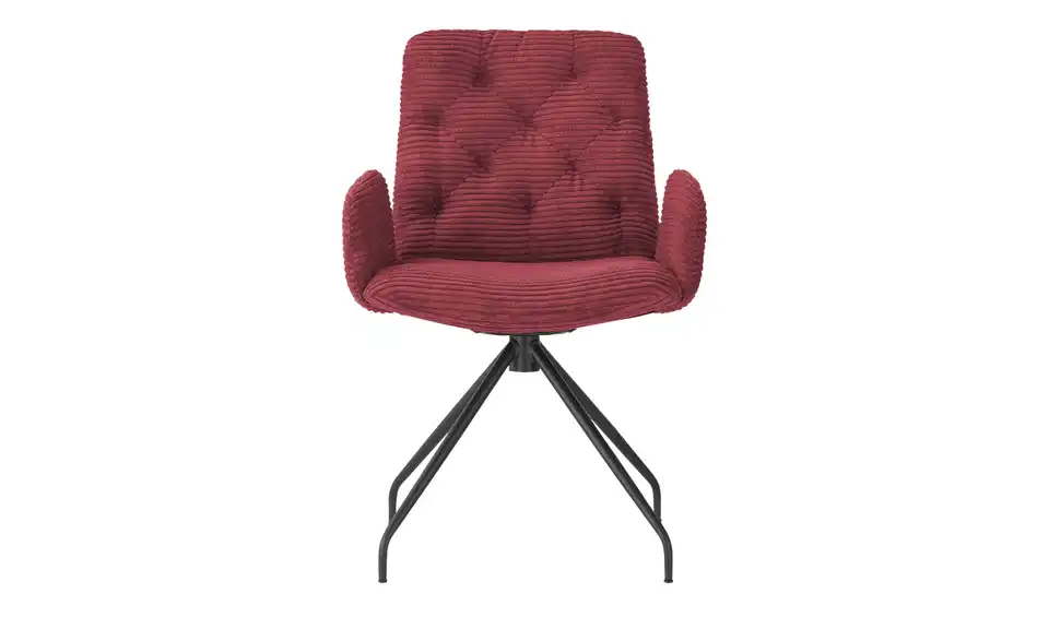 Bei dieser Serie der Marke Jette Home wird weicher, trendiger Cordstoff in den Vordergrund gerückt. Modernes, schwarzes Metall verleiht der Serie außerdem eine attraktive, loftige Note. Bei diesem Polsterstuhl wurde der Cordstoff an der Rückenlehne dezent abgesteppt. Dank der Sitzhöhe von 49 Zentimetern passt der Polsterstuhl zu zahlreichen Esstischen und sogar Schreibtischen. Unser Tipp: Kombinieren Sie diesen Armlehnenstuhl mit dem gleichnamigen Gegenstück ohne Armlehne, um Ihre Sitzgruppe optisch aufzulockern.