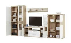 Zeitloses Mattweiß, Akzente aus Asteiche Bianco und attraktives Hirnholz: Die Möbelserie Laguna von Jette Home verbindet modernes Design mit natürlichen Details. Nutzen Sie die sechs blickdichten Fächer und die drei Schubkästen, um Wohnzimmerzubehör unterzubringen. In anderen Räumen wird das praktisch unterteilte Sideboard auch problemlos zum Home-Office-Schrank oder zur Kleiderkommode.