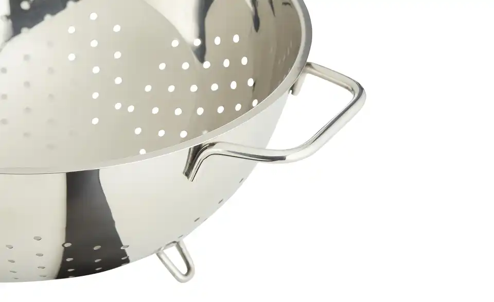 Der Seiher ist aus hochwertigem Edelstahl gefertigt. Seine drei Standfüße ermöglichen das unkomplizierte Abstellen im Spülbecken und auf allen Oberflächen. Die seitlichen Haltegriffe erleichtern die Benutzung.