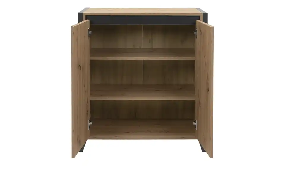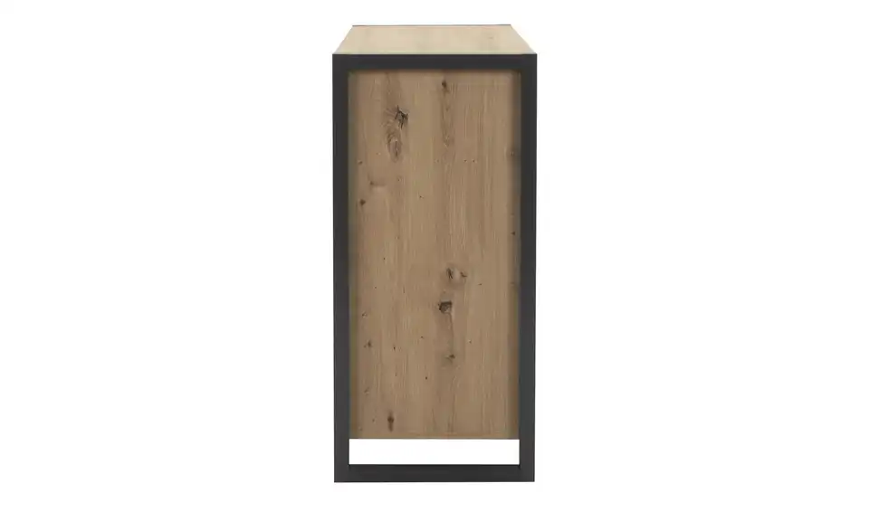 Diese Kommode erinnert an den beliebten Industrial Style. Ihr anthrazitfarbenes Kufengestell harmoniert mit der Asteichen-Nachbildung und setzt einen gewollten Kontrast. Die beiden grifflosen Türen lassen sich über eine dezente Griffmulde unter der Abdeckplatte öffnen. Dahinter stehen Ihnen drei Fächer zur Verfügung. Platzieren Sie die Kommode in Wohn-, Schlaf-, oder Arbeitszimmer: Sie ist vielseitig einsetzbar und passt in diverse Raumkonzepte.