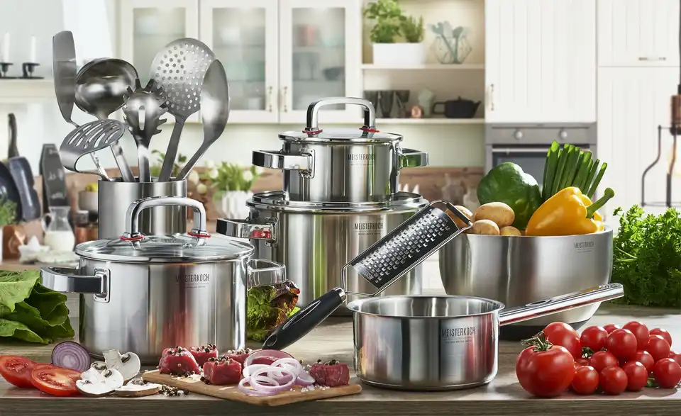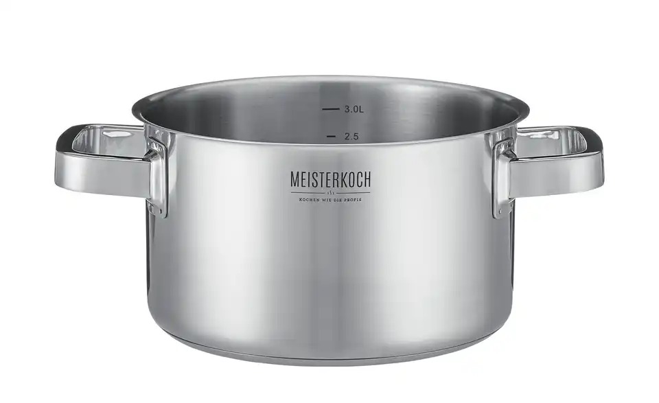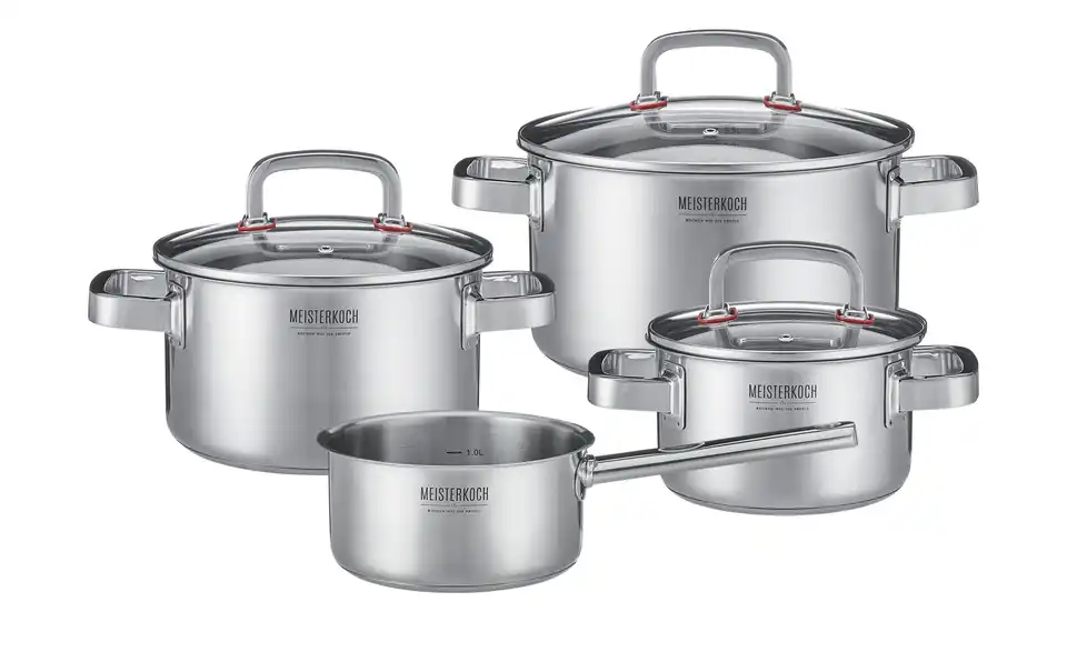 Mit dem Topfset Focus von Meisterkoch zaubern Sie im Handumdrehen leckere Mahlzeiten. Zu dem Set gehören Töpfe in unterschiedlicher Größe. Alle Töpfe werden mit Glasdeckel geliefert. An der Innenwand der Töpfe befindet sich eine praktische Innenskalierung, auf der Sie die Literzahl ablesen können. Das Set besteht aus hochwertigem Edelstahl.