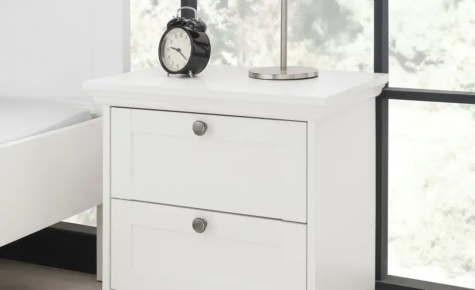 Die Nachtkommode Landwood wird genau neben dem gleichnamigen Bett platziert. Durch den dezenten Landhauslook in Weiß passt Landwood aber auch zu anderen Betten und Einrichtungen. Landwood ist mit zwei Schubladen ausgestattet – und auch die Abdeckplatte kann als Stellfläche genutzt werden. Beispielsweise für eine Nachttischlampe.