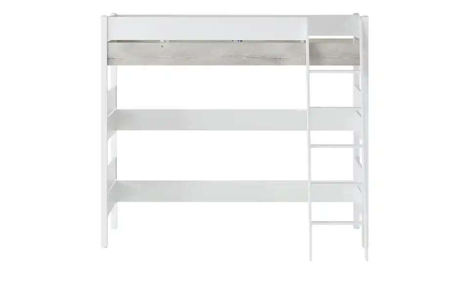 Hochbetten sind extra praktisch für das Kinder- und Jugendzimmer. Der Grund: Durch die erhöhte Liegefläche entsteht praktischer Stauraum. Der Platz kann aber auch als Höhle zum Spielen verwendet werden. Kira ist so ein praktisches Hochbett von PAIDI. Es hat eine Liegefläche von 90 x 200 Zentimetern. Sie wird von einer Absturzsicherung umrandet. Eine leicht schräg gestellte Leiter ist im Lieferumfang enthalten. Alle Oberflächen sind mit Melamin beschichtet. Das Material zeichnet sich durch seine Widerstandsfähigkeit aus. Die Beschichtung ist in Kreideweiß und Eiche Nautik (Nachbildung) gehalten.