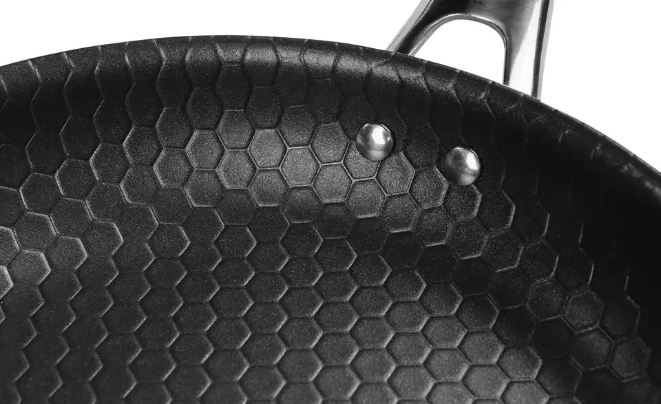 Diese Wabenpfanne besitzt die ideale Wärmeleitfähigkeit und wurde in einem aufwändigen Verfahren mit der Excalibur-Antihaftbeschichtung versehen. Somit gelingt das schonende und fettfreie Anbraten, Dünsten, Garen und Kochen in der Pfanne perfekt. Antihaftbeschichtete Pfannen sind besonders zum Garen auf nicht zu hohen Temperaturen für zarte Lebensmittel wie Fisch, Geflügel, Eiern, Gemüse und Mehlspeisen geeignet.