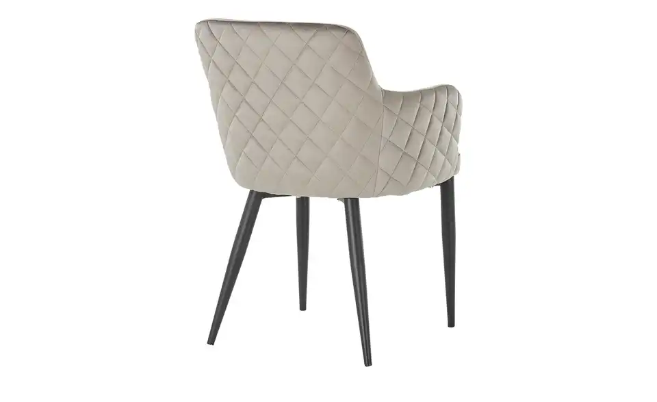 Ein edler Eyecatcher ist der Armlehnenstuhl Heiner. Sein schimmernder Bezug aus samtig weichem Polyester besitzt an der Außenseite eine dekorative Diamant-Steppung. Für den nötigen Sitzkomfort sorgt die hochwertige Schaumstoffpolsterung. Die mattschwarzen Metallfüße sind leicht gespreizt und gewährleisten einen festen Stand. Ob als Einzelstück oder als Sitzgruppe: Der Armlehnenstuhl Heiner fügt sich in nahezu jedes Raumkonzept problemlos ein.