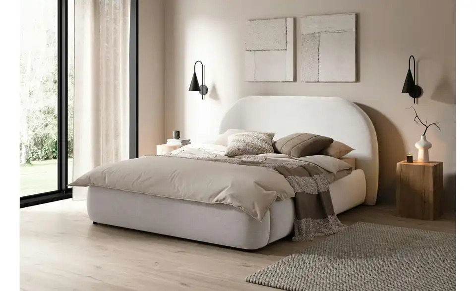Sind Sie auf der Suche nach modernen Formen und einem Hauch von Exklusivität für Ihr Zuhause? Das Polsterbett Ovo kombiniert außergewöhnliches Design, maximalen Komfort und praktische Funktionalität – eine perfekte Wahl für jedes Schlafzimmer. Mit seinem markanten, abgerundeten Kopfteil und dem eleganten Rahmen zieht Ovo die Blicke auf sich. Der attraktive Bezugsstoff verbindet eine zeitlose Optik mit einer angenehmen Haptik. Der hochwertige Stoff sorgt nicht nur für ein stilvolles Erscheinungsbild, sondern bietet auch gemütlichen Komfort – ob für einen entspannten Abend mit einem Buch oder ein langes Frühstück im Bett. Der stabile Bettrahmen aus einer Kombination von Holz, Möbelplatten und HDF-Platten bietet Langlebigkeit und Sicherheit. Der Metall-Lattenrost mit Gasdruckfedern lässt sich mühelos nach oben öffnen und gibt den Blick auf einen geräumigen Bettkasten frei. Dieser bietet ausreichend Stauraum für Bettwäsche, Decken und andere Utensilien, getrennt durch eine praktische Mittelwand.