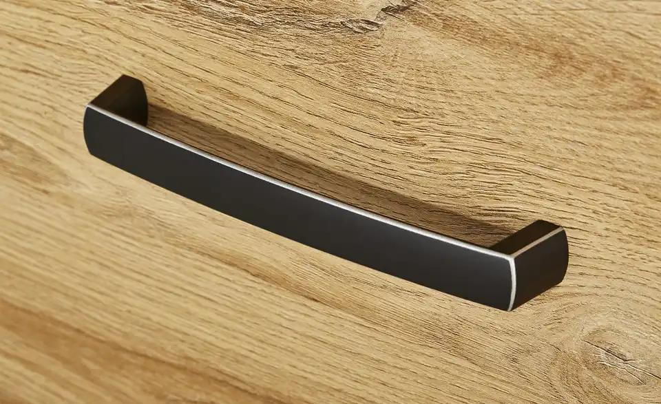Das Sideboard Cagliari ergänzt die gleichnamige Wohnkombination. Sie können es aber auch mit anderen Möbeln im Holzlook kombinieren. Das gesamte Sideboard hat ein Dekor in Alteiche (Nachbildung). Seine Maserung ist ausgeprägt und mit Farbunterschieden und Asteinschlüssen versehen. Die Oberfläche fühlt sich angenehm griffig an. Cagliari verf�ügt über drei Türen und einen Schubkasten. Das Innere des Sideboards unterteilt sich in sechs Fächer.